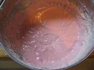 6. Add as much or as little food colouring as you like. I found this groovy all natural stuff called ‘Queen’ in Waitrose, so I went nuts and poured in a fair amount. Then fill your cases, about two thirds up to the top.