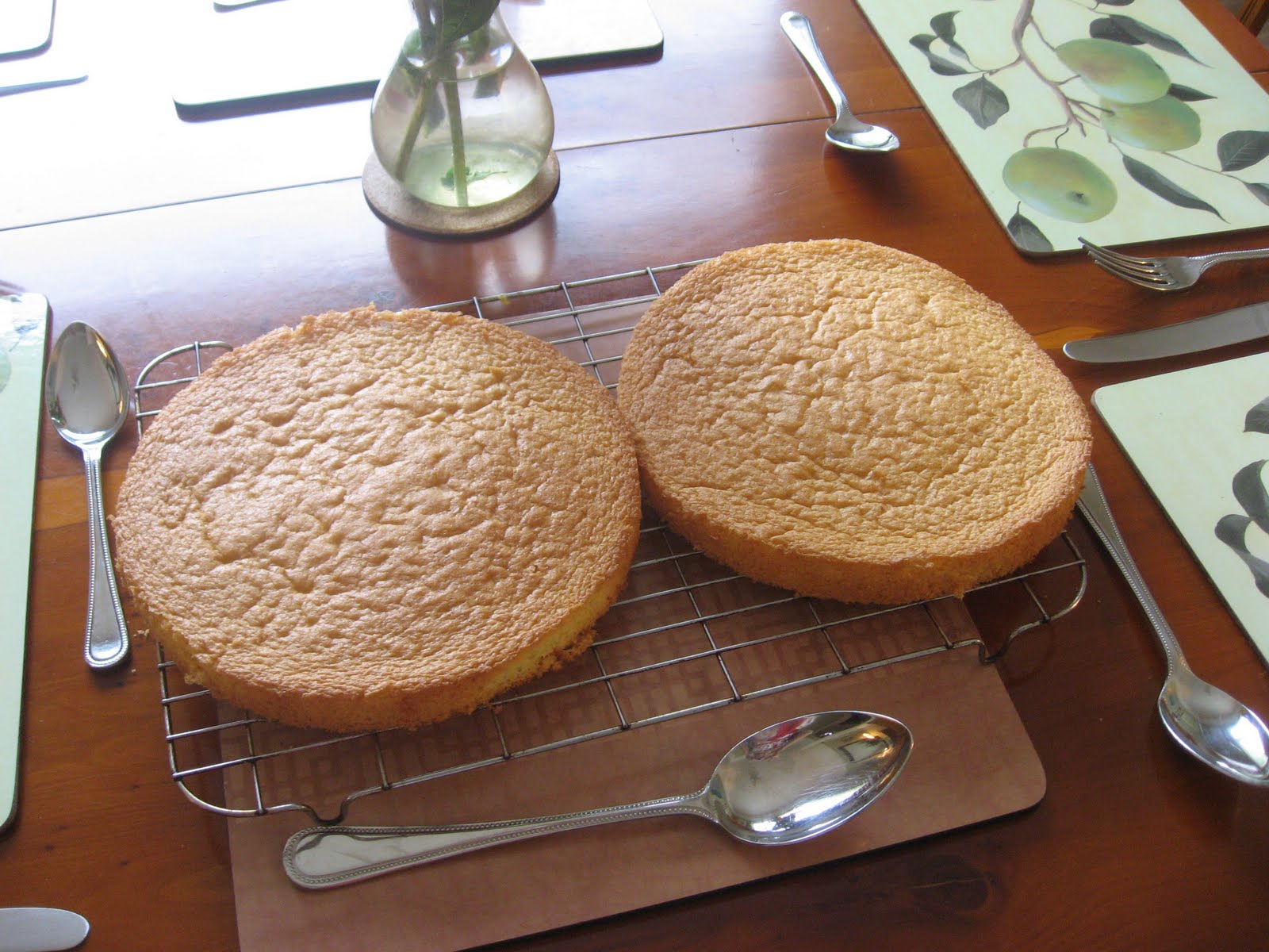 3. Take the next sponge, and spread lemon curd on the underside (easier than trying to put it on top of the fruit, see?) Then add that layer on top, and do the cream and fruit thing again.