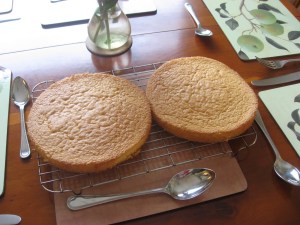 1. I’ll warn you – this mixture will seem a bit weird. That’s because it’s a whipped sponge, meaning it’s light, butter-free, and just perfect for putting with cream and fruit. Preheat your oven to 170 degrees C. Lightly grease three 20cm round cake tins.