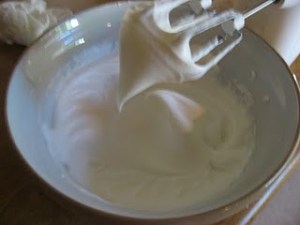 3. In a large bowl, whisk the egg whites into stiff peaks. If you’re an ultra domestic goddess like me, you’ll save the egg yolks to use for a nice lemon or passionfruit curd…