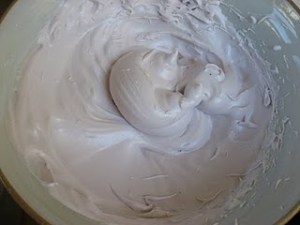 4. Gradually whisk in the caster sugar, a tablespoonful at a time, until all the sugar’s in and the mixture looks thick and glossy.