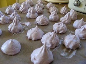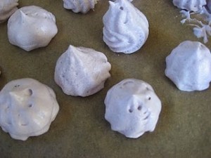 6. Alrighty then – you all know the saga of my poor, broken piping bag, so please excuse the following sorry excuses for what should be beautifully piped meringues. But you should manage better, just pipe away.