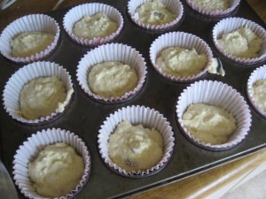 9. Spoon mixture into your cupcake cases, filling until half full. Bake for between 18-20 minutes, or until a skewer comes out clean.