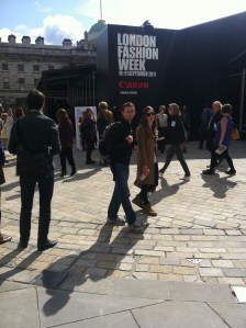 With street style blogs and websites springing up everywhere, photographers are not simply there to snap a covert pic of Anna Wintour, or any of the other Frow-ers. I was surprised, when I first entered Somerset House, to feel someone grab my arm and ask if they could take a picture of me. It happened again subsequently, and it’s surprising how quickly you get used to holding a conversation, quickly turning to be snapped, then returning to the chat again. Also, once one photographer hauls you out to take a picture of you, others will follow suit. I’m not saying I was wearing anything particularly bizarre, fabulous, or attention grabbing – and I’m still convinced I’m going to spot myself on some blog under the title ‘What were they thinking? The worst of LFW’, but still. It was very flattering.