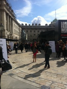 I didn’t think I was going to care about what I wore. I didn’t plan ahead, only for the first day, and that was only by lucky chance that I picked up something new to wear. Everything I’d read prior to attending said ‘don’t even worry – no one will be looking at you’. This is absolute RUBBISH. People look. The general public look at you as you leave the station and walk down The Strand. As you approach Somerset House, other LFW-attendees give you the look up and down. It’s just automatic, it doesn’t mark you out as special, it’s just an involuntary thing that most people in fashion do. A very quick sweep, feet up to hat.