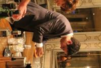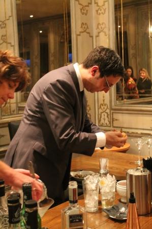 I’d also assumed (and when you assume, you make an ass out of you and me, as we all know) we’d be set up on tables with ingredients. Instead, everything was at the very front of the room, by Marco. At the end of the talk, we could all go up and try making our own martini. I’d been dreaming of creating an elderflower and cucumber version, but we had limited supplies. One gin, one vodka, Martini, Martini Rosso, peach liqueur, raspberry liqueur, Midori, blue curacao, olives, lemons. Becky and Rachel decided to try mixing raspberry with gin, and adding lemon. It was more palatable for me than the dirty martini, but ultimately I still didn’t have more than a few sips.