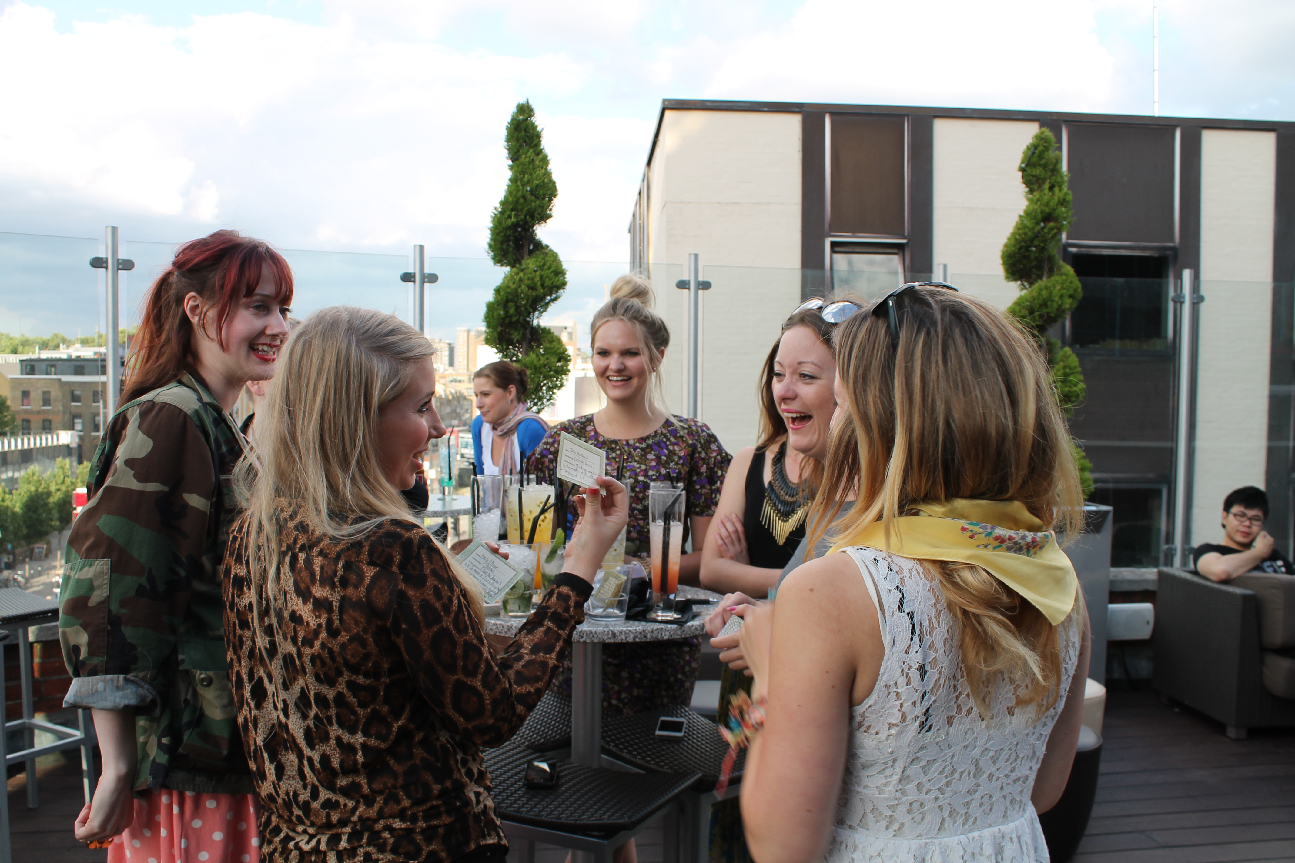 I got to go to the preview for the very exciting new diffusion range from Alice Temperley for John Lewis, again to cover for Lady M last night. A small crowd of fashion bloggers and writers (I wonder what the collective noun for that is?!) descended on The Golden Bee in Shoreditch, really close to Old Street tube. It was a fab venue, and we quickly claimed a comfy sofa on the roof terrace, and started the cocktail drink in earnest. I know! On a school night as well…We had mojitos, Strawberry Collins, and Passionfruit Collins. I was also childishly delighted by the special goviral packs of Smarties on the tables.