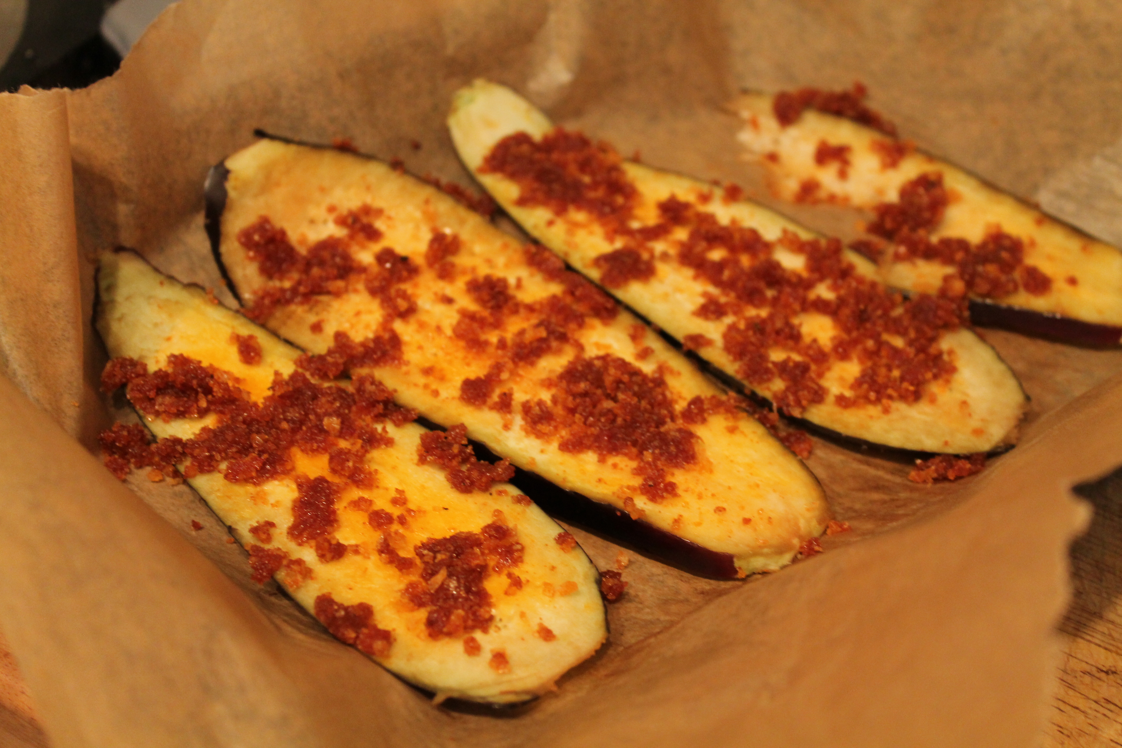 I remembered hearing that aubergine could be turned into vegetarian ‘bacon’, so set out to create my own recipe. Obviously I’ve got no idea how this compares to real bacon, but give it a try and see how it stands alone. It’s smoky, sweet, savoury and very crisp, so ticked all my boxes! I’ll just add here that up until today, I’ve always hated aubergine, but now I’m finally getting the hype…
