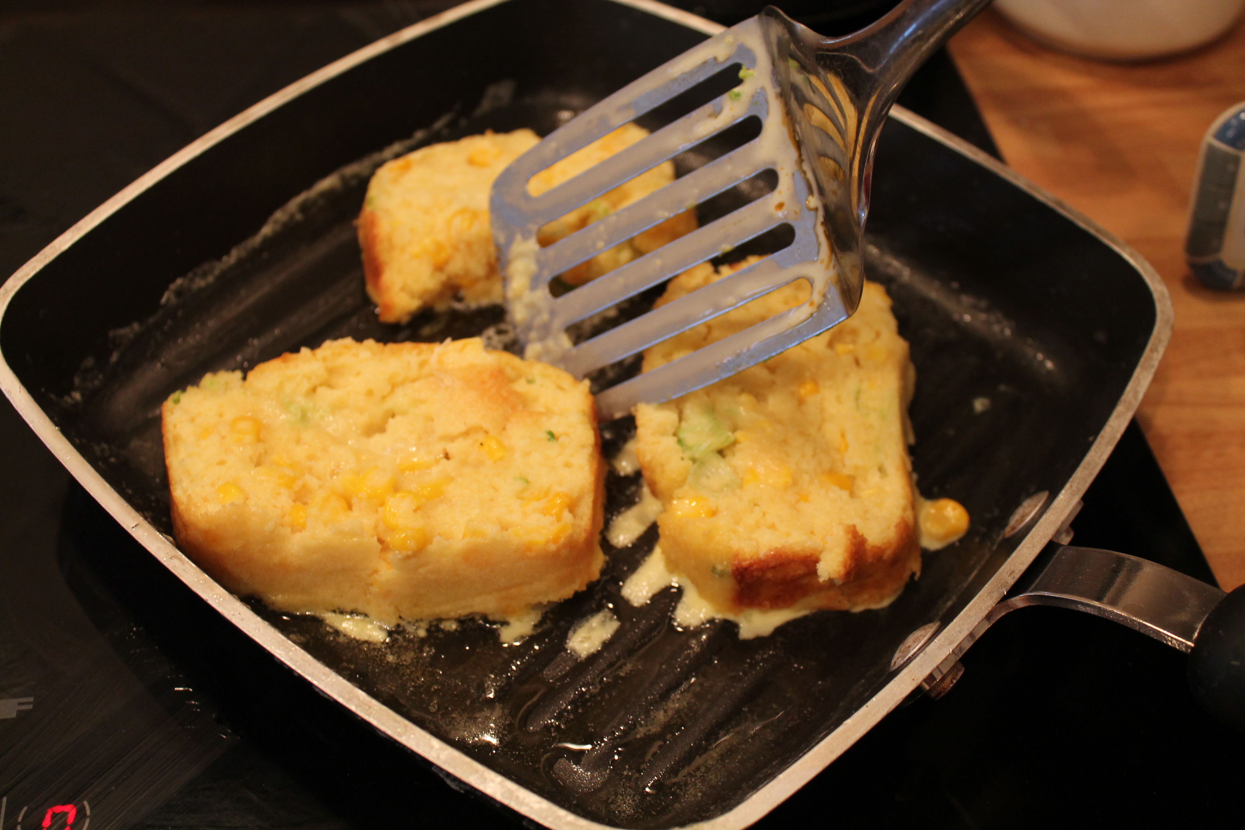 6. Cut two thick slices of cornbread and dip in the egg and cream mixture