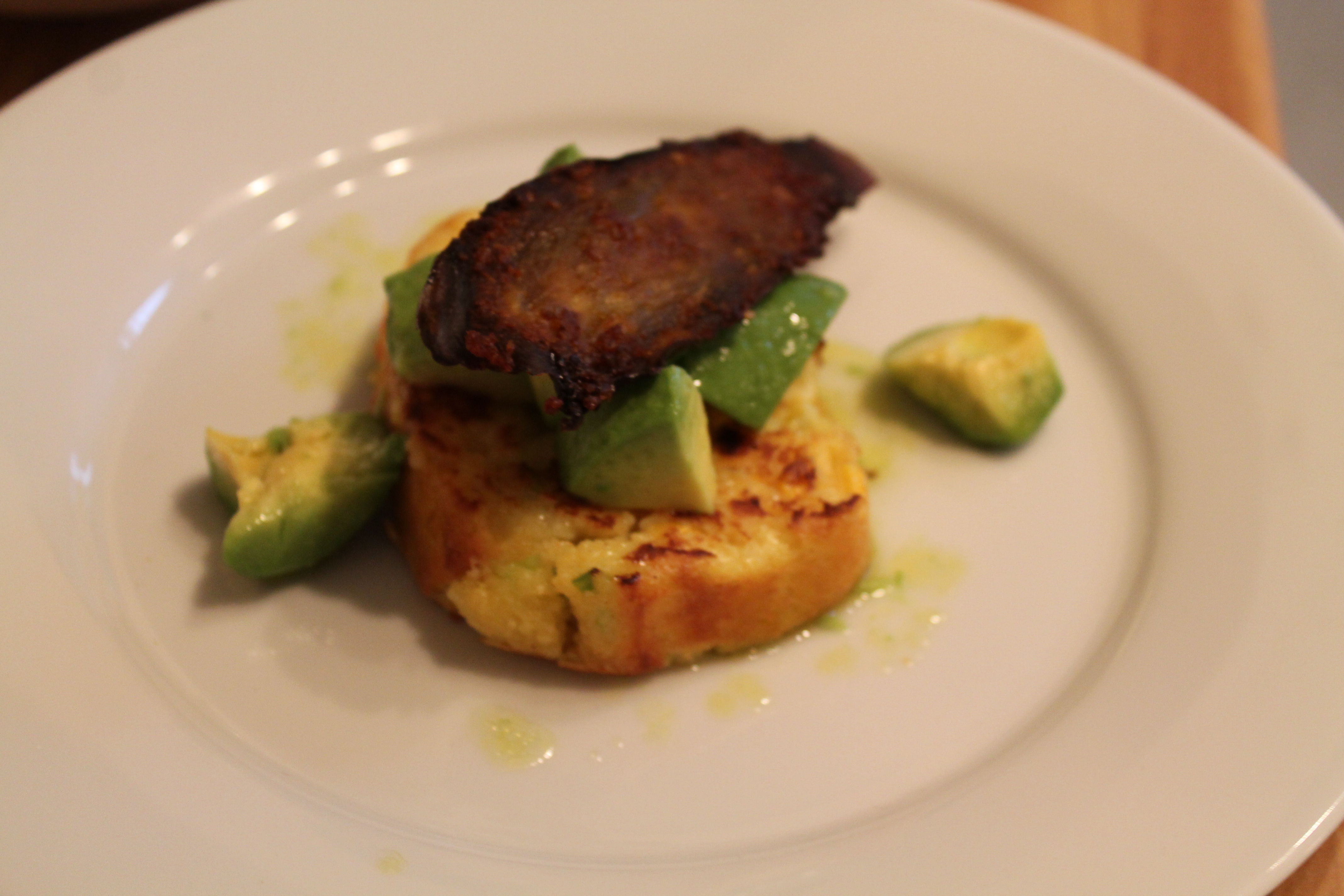 This week has been, in short, heavy on stress and light on sleep. Add a couple of nights out in a row and I was in desperate need of something unhealthy to munch on. I spotted a recipe for cornbread, avocado and crispy bacon in the Waitrose magazine and decided that was one for me – the only slight problem being my vegetarianism. I’ve never eaten bacon, but I wanted something crisp, salty and smoky to offset the pillow-like cornbread and cool avocado.