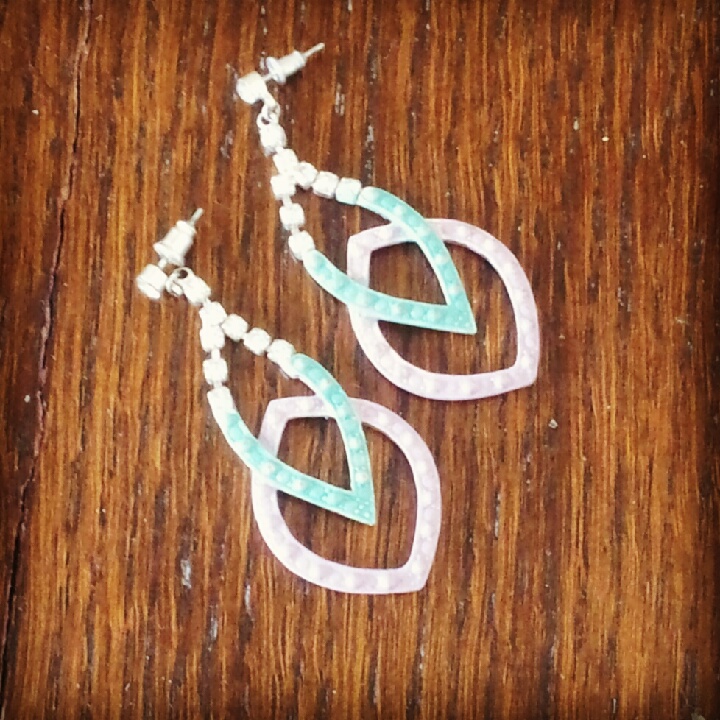 The second project I can tell you exactly how to do, and it’s the easiest update for jewellery ever. I dug deep into my jewellery box and found a pair of very boring rhinestone earrings. Beyond boring, they looked cheap. A clear crystal rhinestone tends to look dull at night and strange during the day, so here’s what I did: I grabbed some nail varnish. And I painted over the crystals. I used jade and lavender for a colour blocked effect. I did three coats to get a decent coverage, and left them to dry overnight. Easiest thing ever. Bonus tip: my favourite leather jacket had zips that were starting to discolour, so I painted them over with a metallic nail varnish, and it looked brand new. SIMPLE.