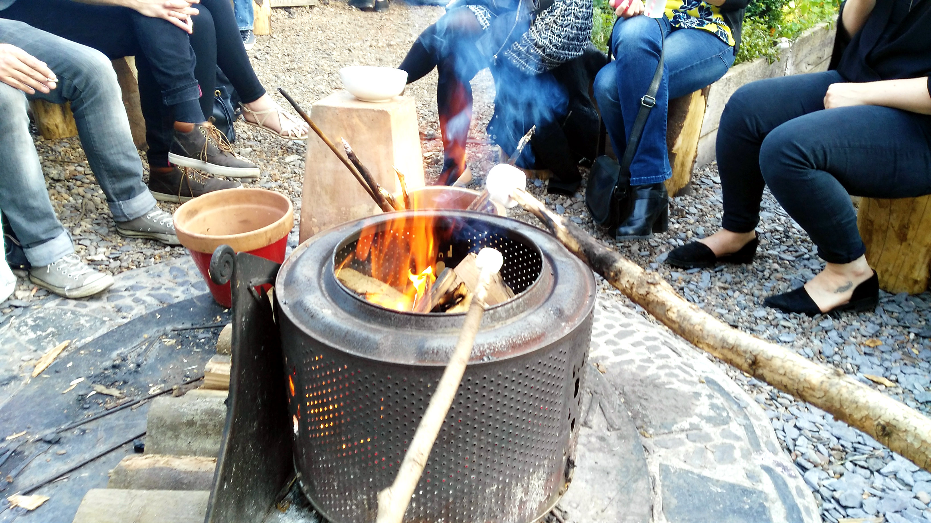 IMG_20150801_193651 IMG_20150801_182135We moved from the outskirts of the garden into the centre, round the campfire, and grabbed a couple of stakes to toast our marshmallows on. Never has there been such a feeling of being simultaneously entirely masculine (large pointy wooden stake) but entirely girly (tiny pink marshmallow), and I enjoyed it immensely. As it turns out, my toasting skills are VERY poor. My phone is still bathed in a kind of marshmallow ectoplasm, and I was mercilessly made fun of by my Canadian pal who is adept at these kind of essential life skills.